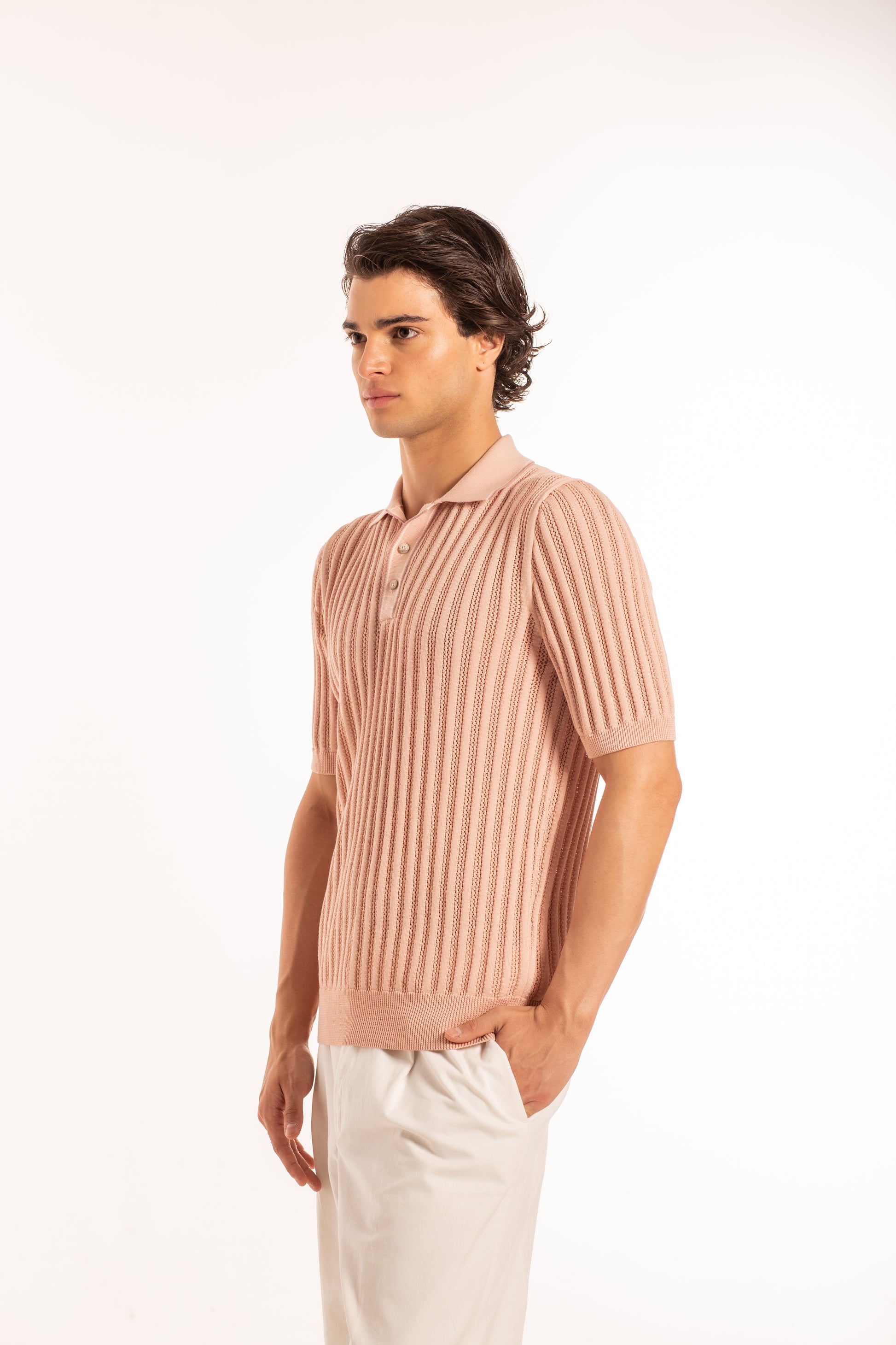 Polo a manica corta con chiusura a tre bottoni, realizzata in punto maglia traforato verticale e arricchita da dettagli a righe a contrasto sul colletto, per un’eleganza contemporanea e ricercata. Realizzata in cotone crêpe, un materiale dalla mano fresca e croccante, caratterizzato da una struttura leggera e traspirante che assicura comfort e vestibilità perfetta tutto il giorno.