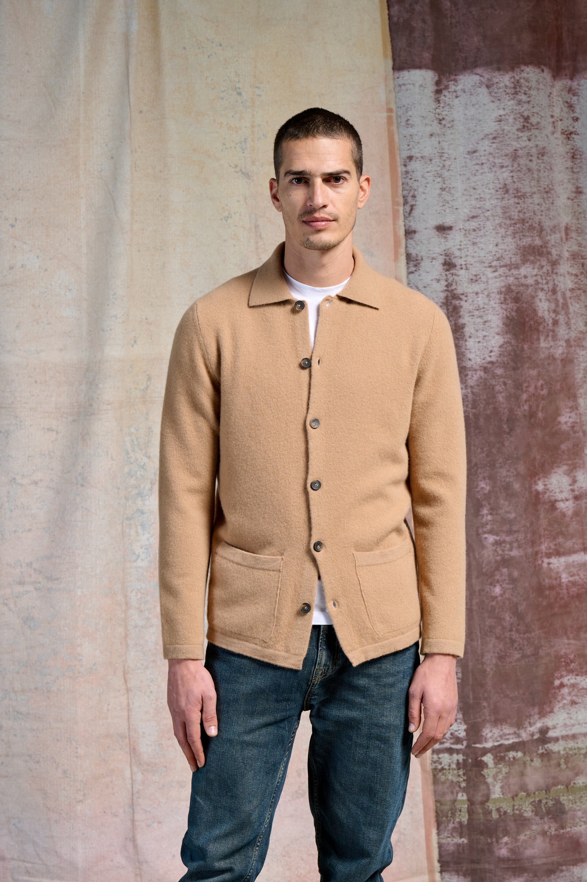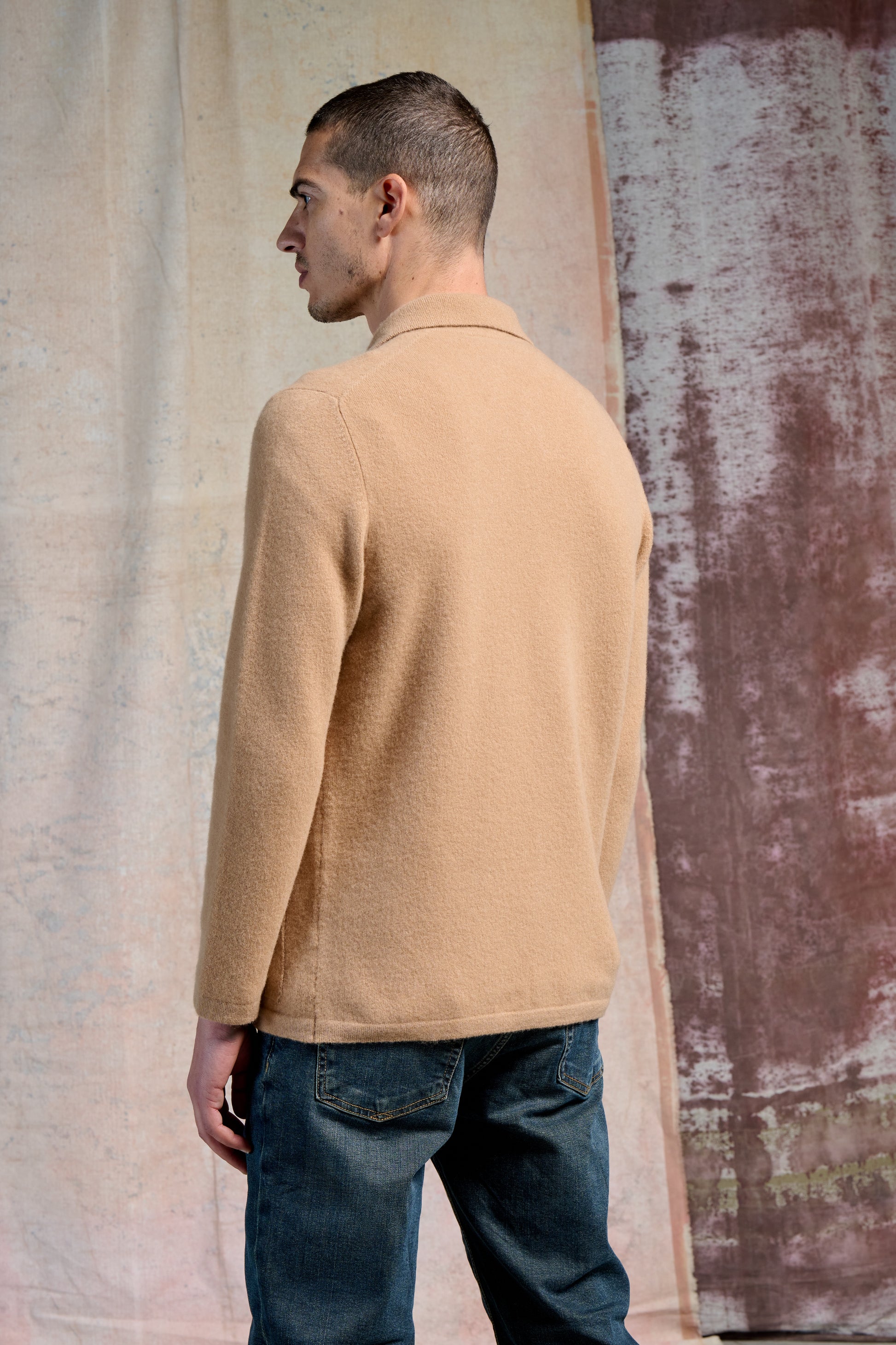 Camicia Infeltrito. Il filato infeltrito è realizzato partendo da una fibra di lana di altissima qualità certificata RWS, con l’aggiunta di una piccola percentuale di Elastan che negarantisce l’elasticità. Il risultato sarà una texture compatta ma morbida,