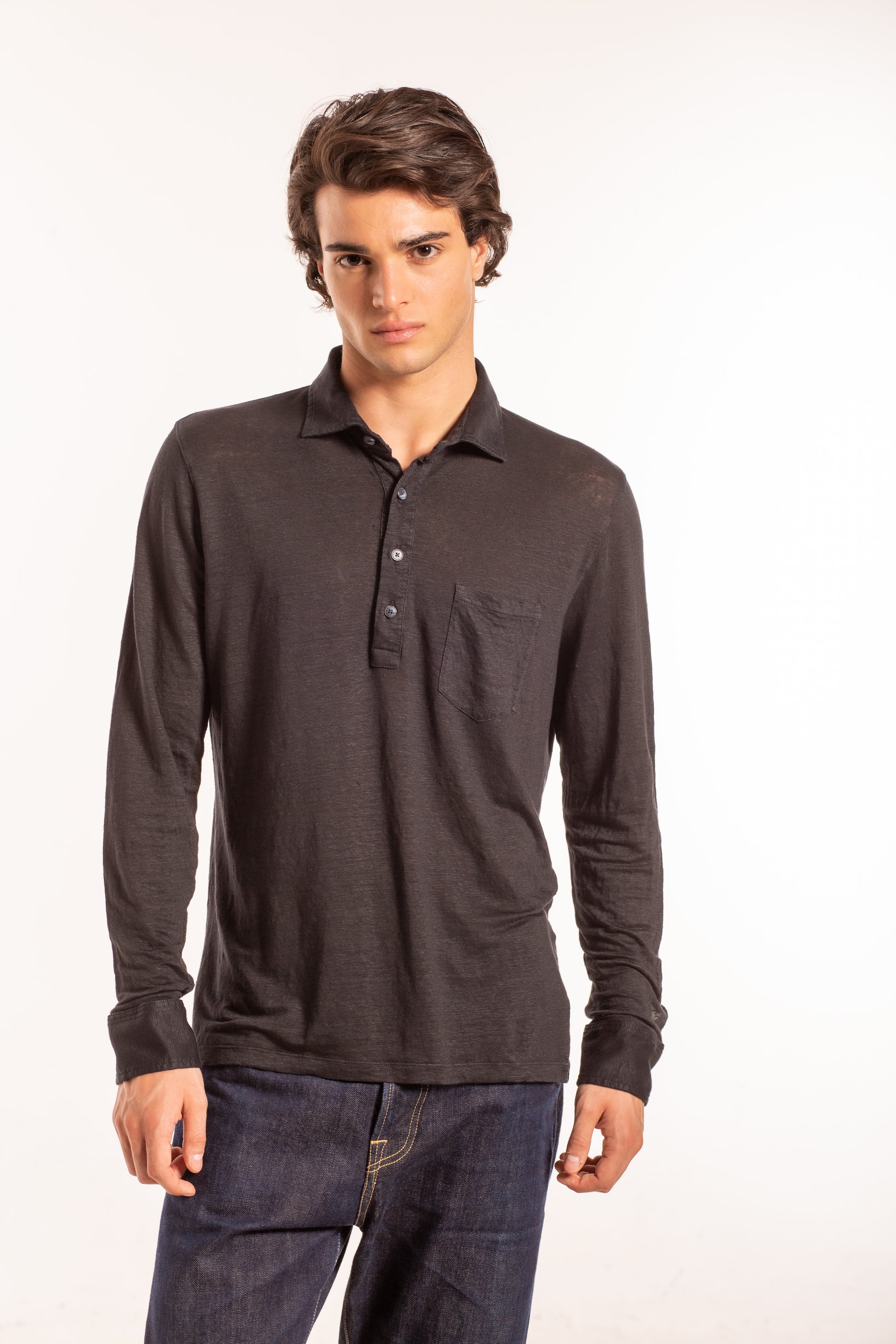 Polo Camicia ML Taschino Lino.