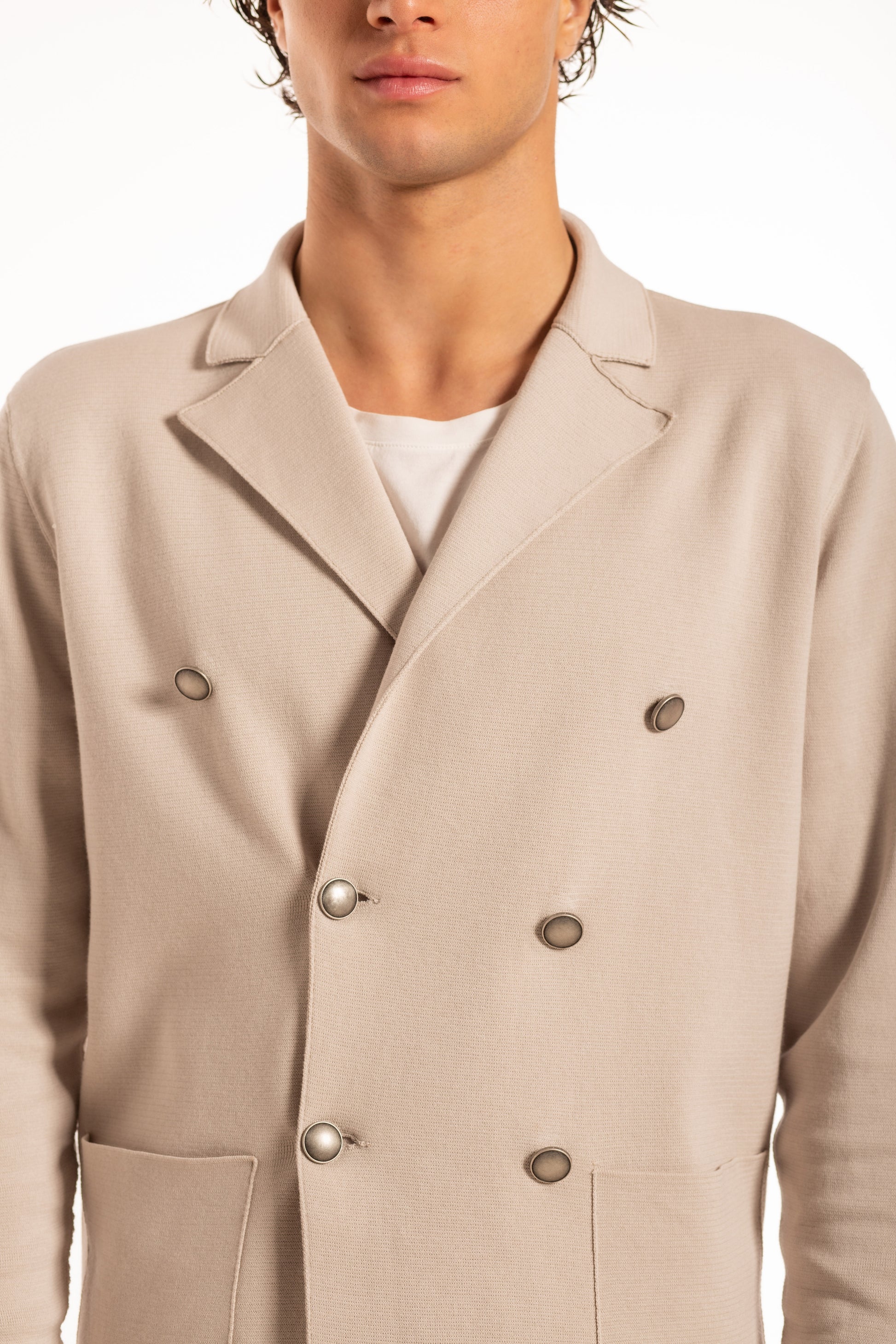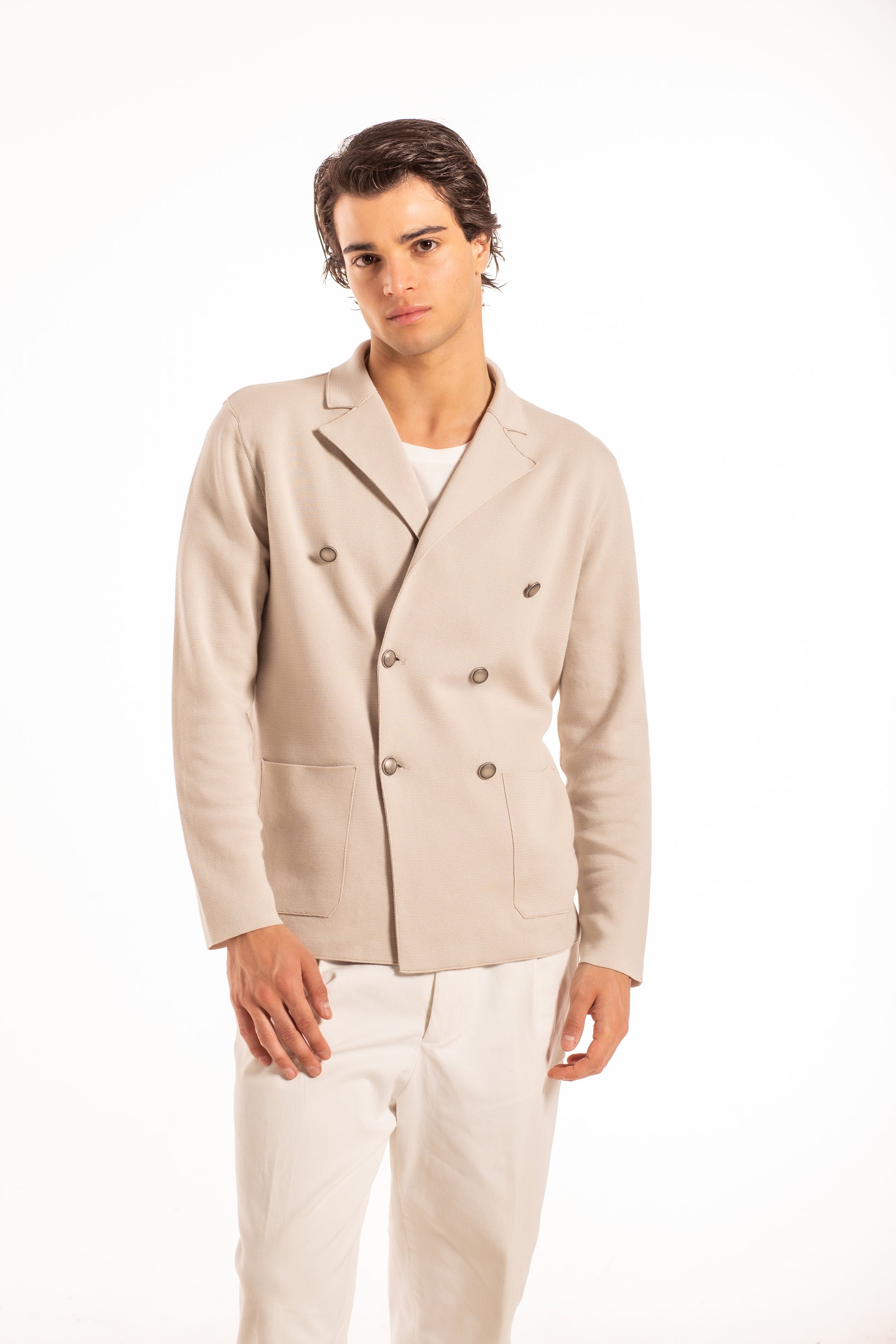 Giacca doppiopetto, con bottoni in metallo e tasche applicate. Lavorato in punto Milano, una lavorazione compatta e strutturata che garantisce comfort, stabilità e un’eleganza contemporanea. Realizzata in cotone con tecnologia di filatura compatta COM4® Rieter, che riduce la formazione di pilling e garantisce una maggiore durata nel tempo.