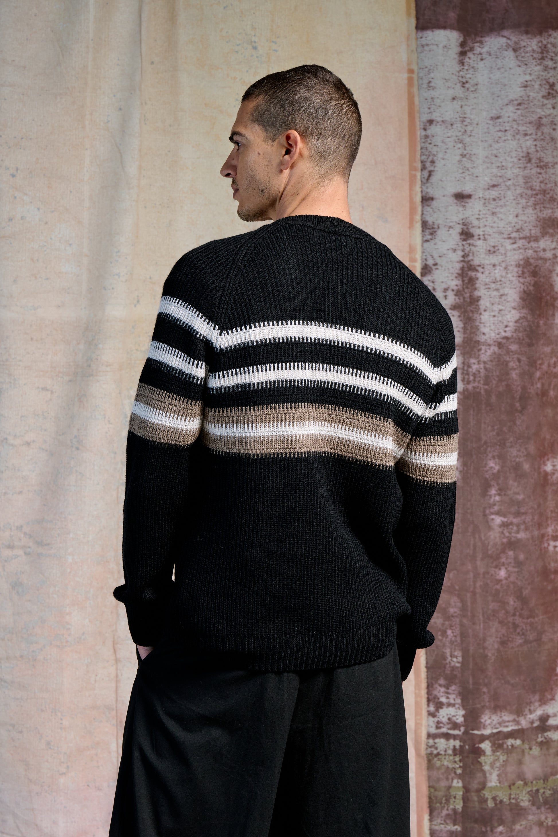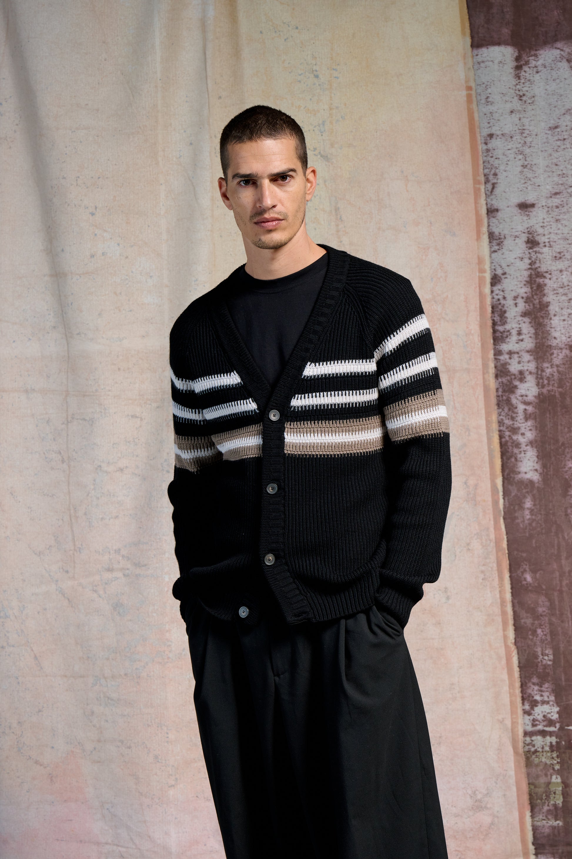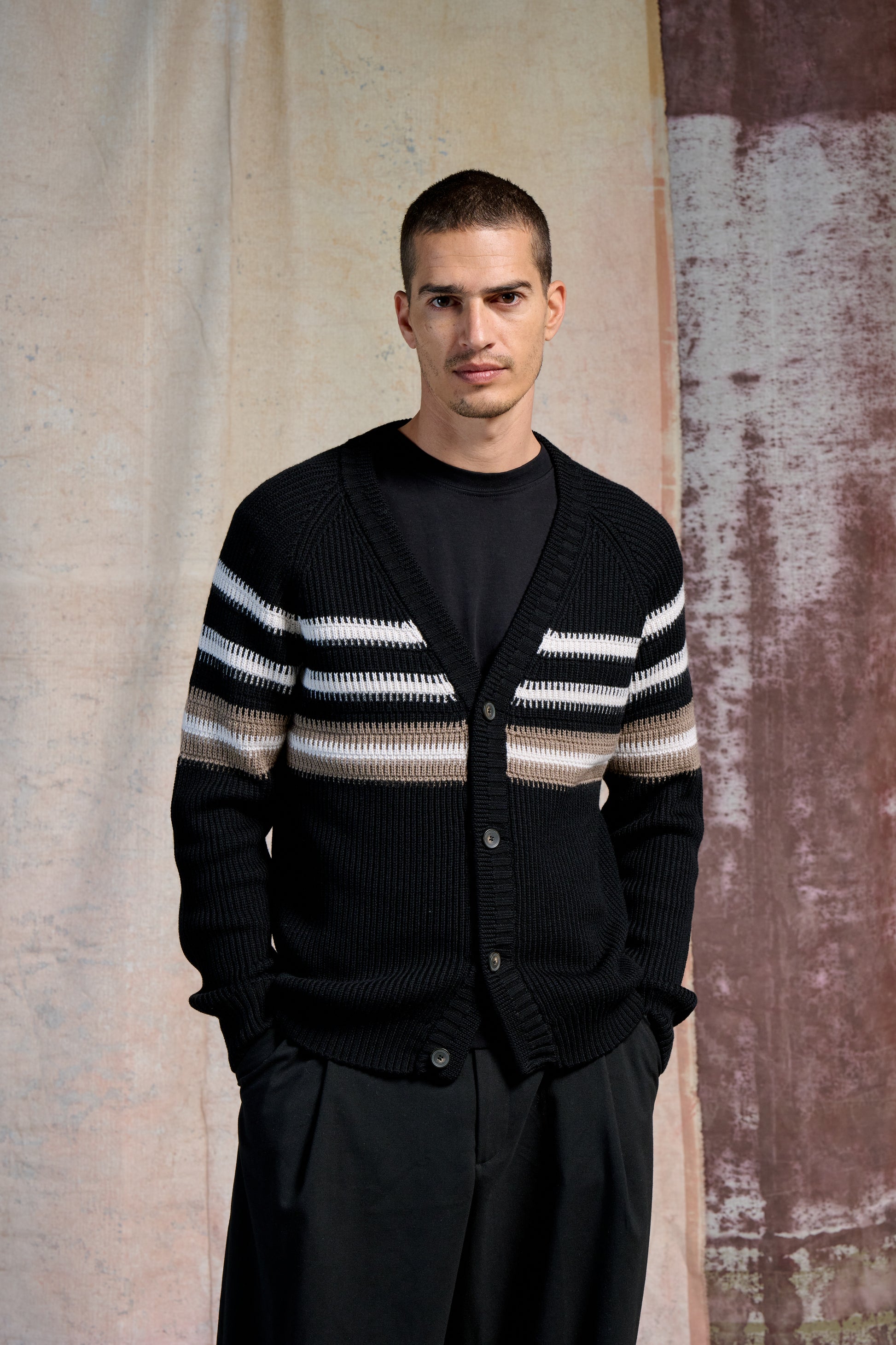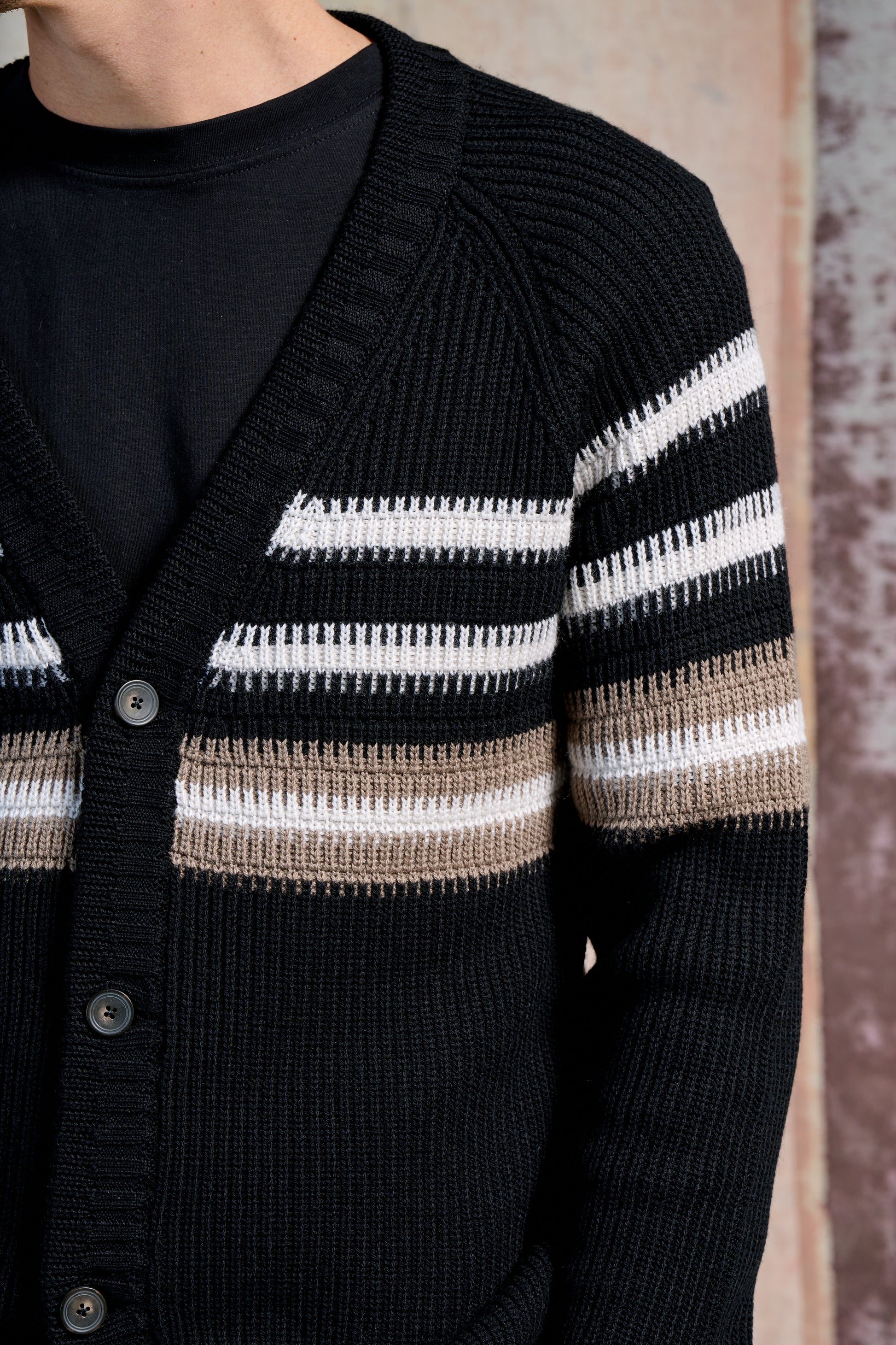 Cardigan Righe Merinos Super 100's 2/30,filato di alta qualità.