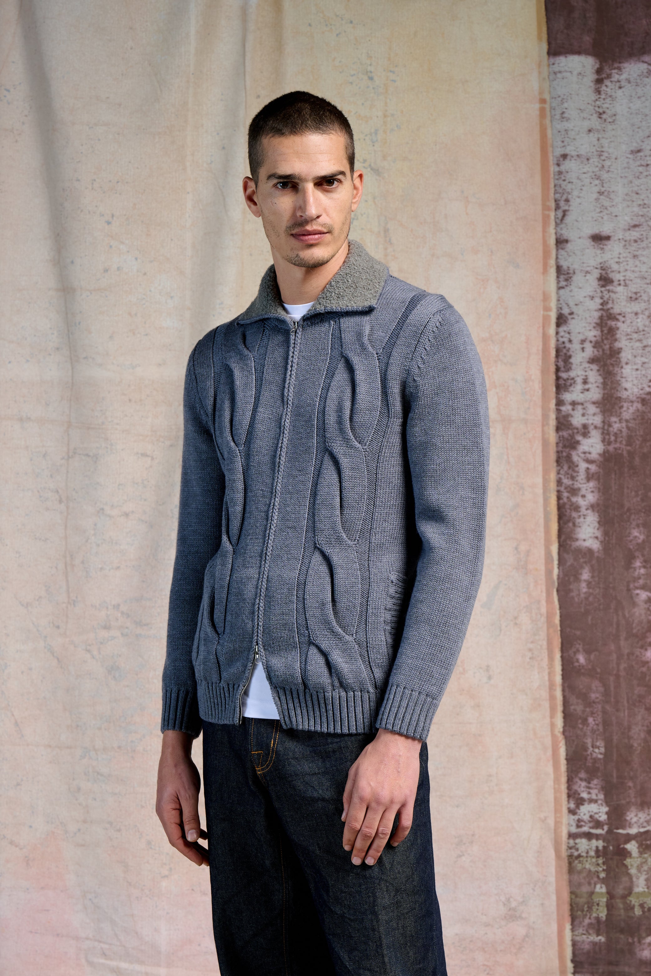 Full Zip Merinos Super 100's 2/30,filato di alta qualità.