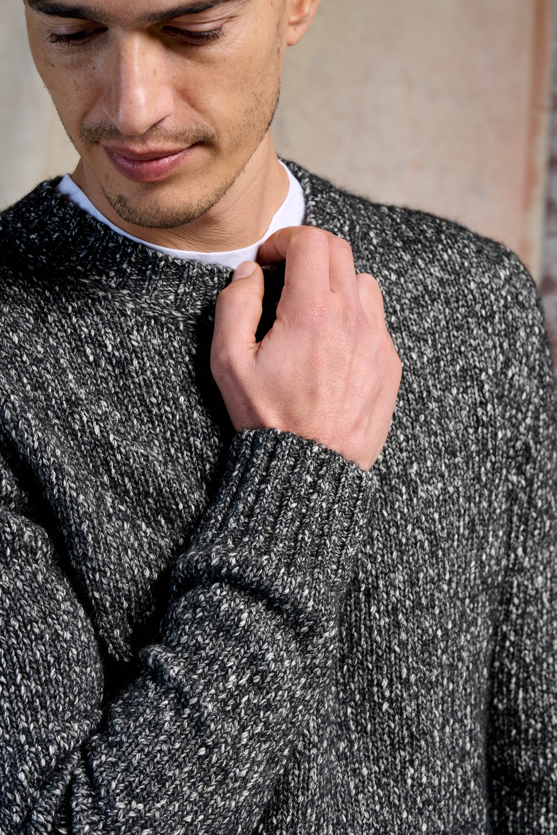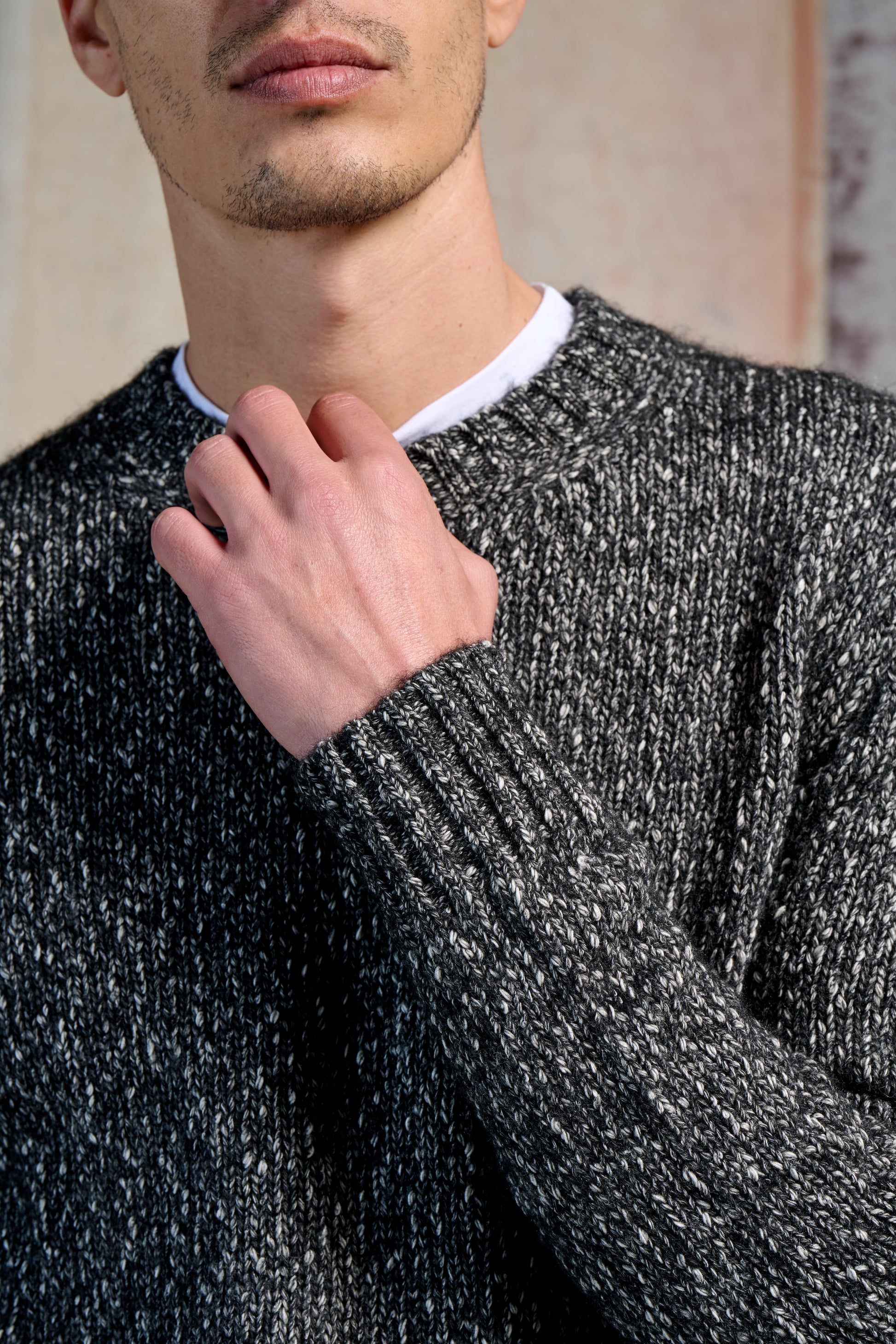 Girocollo F3 Storm. Questo filato è un soffilo o filato soffiato. Un soffilo è una tipologia di filo