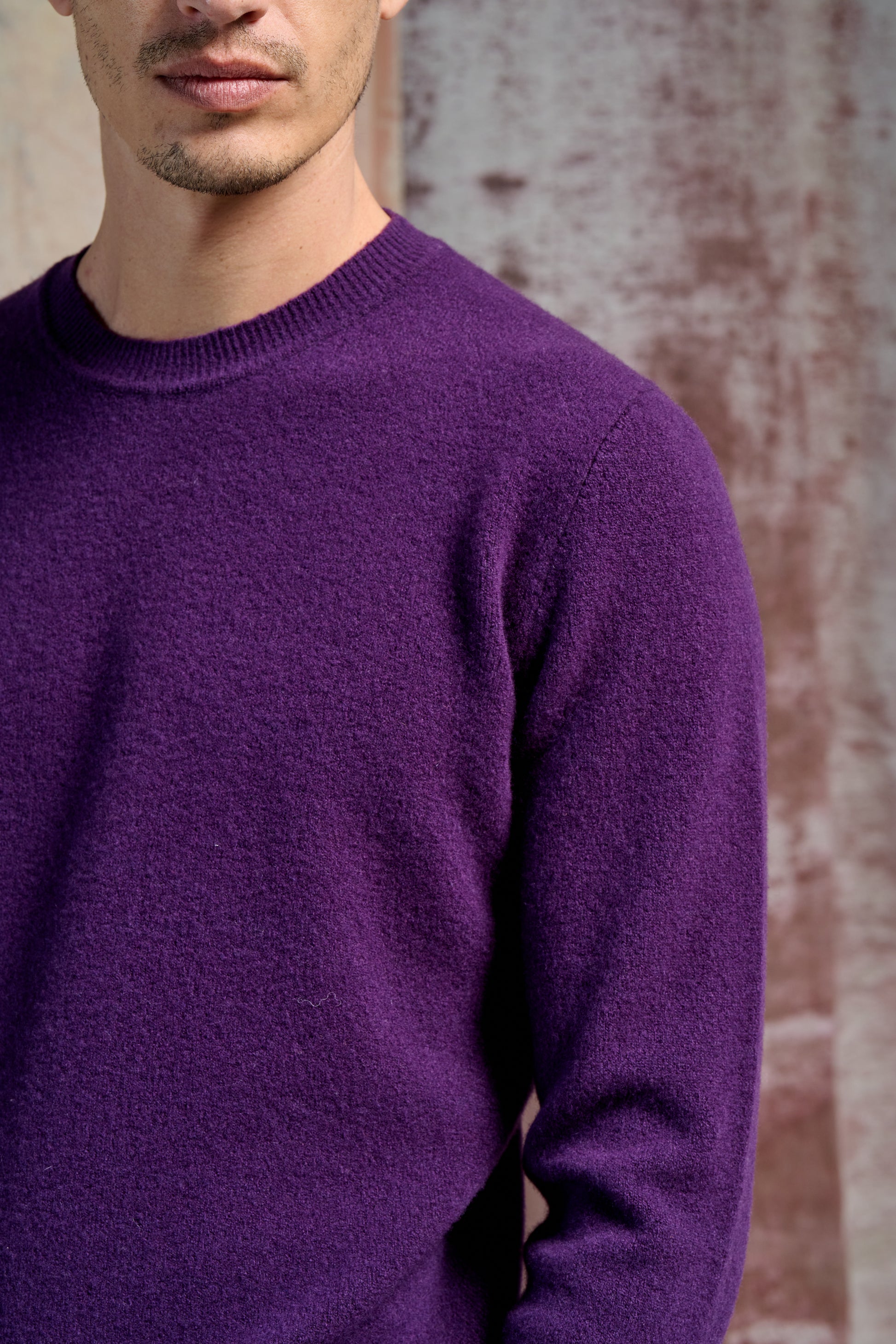 Girocolo Infeltrito. Il filato infeltrito è realizzato partendo da una fibra di lana di altissima qualità certificata RWS, con l’aggiunta di una piccola percentuale di Elastan che negarantisce l’elasticità. Il risultato sarà una texture compatta ma morbida,