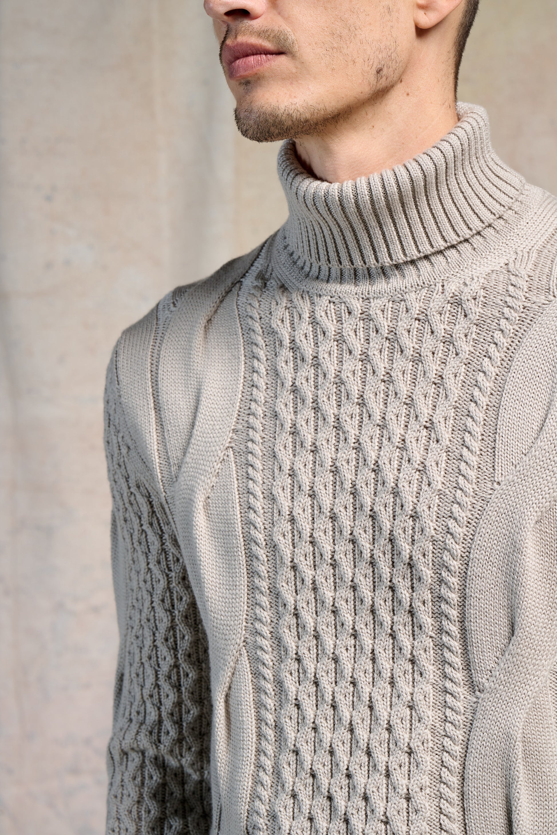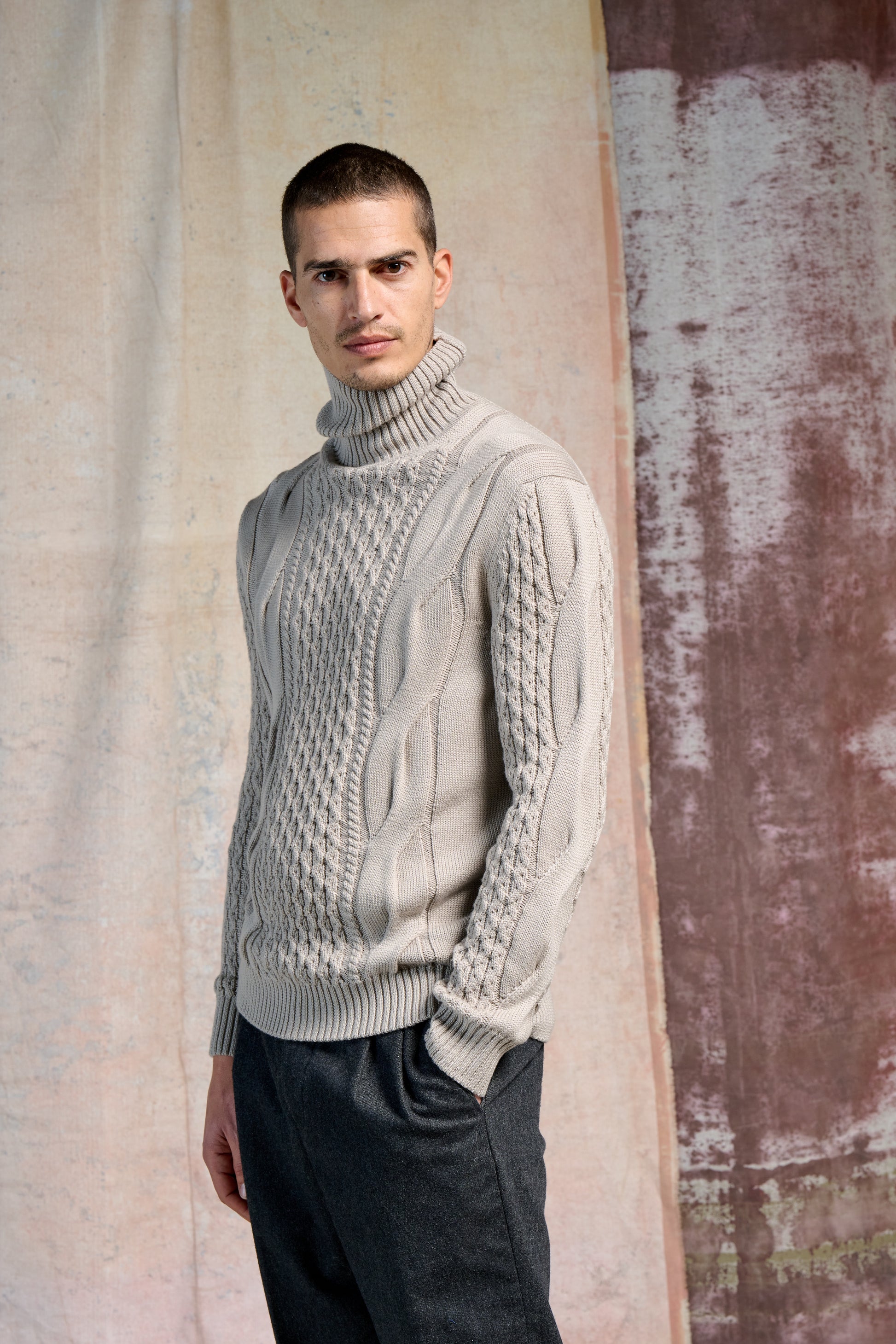 Girocollo Polo Gessato Merinos Super 100's 2/30,filato di alta qualità.
