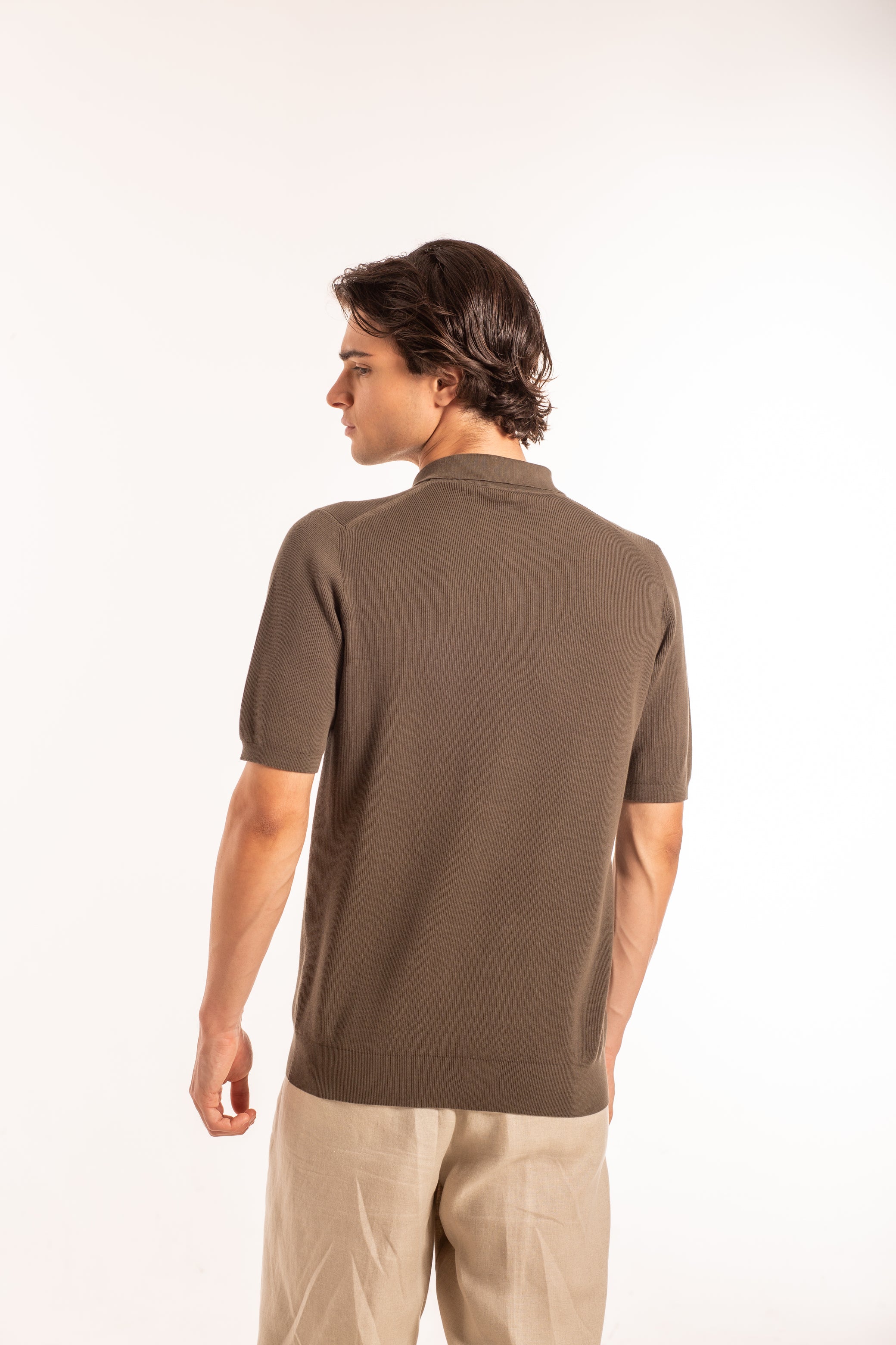 Maglia con colletto polo a tre bottoni, con taschino applicato, mezza manica, lavorata in costa inglese per una texture ricca e confortevole. Realizzata in cotone con tecnologia di filatura compatta COM4® Rieter, che riduce la formazione di pilling e garantisce una maggiore durata nel tempo.