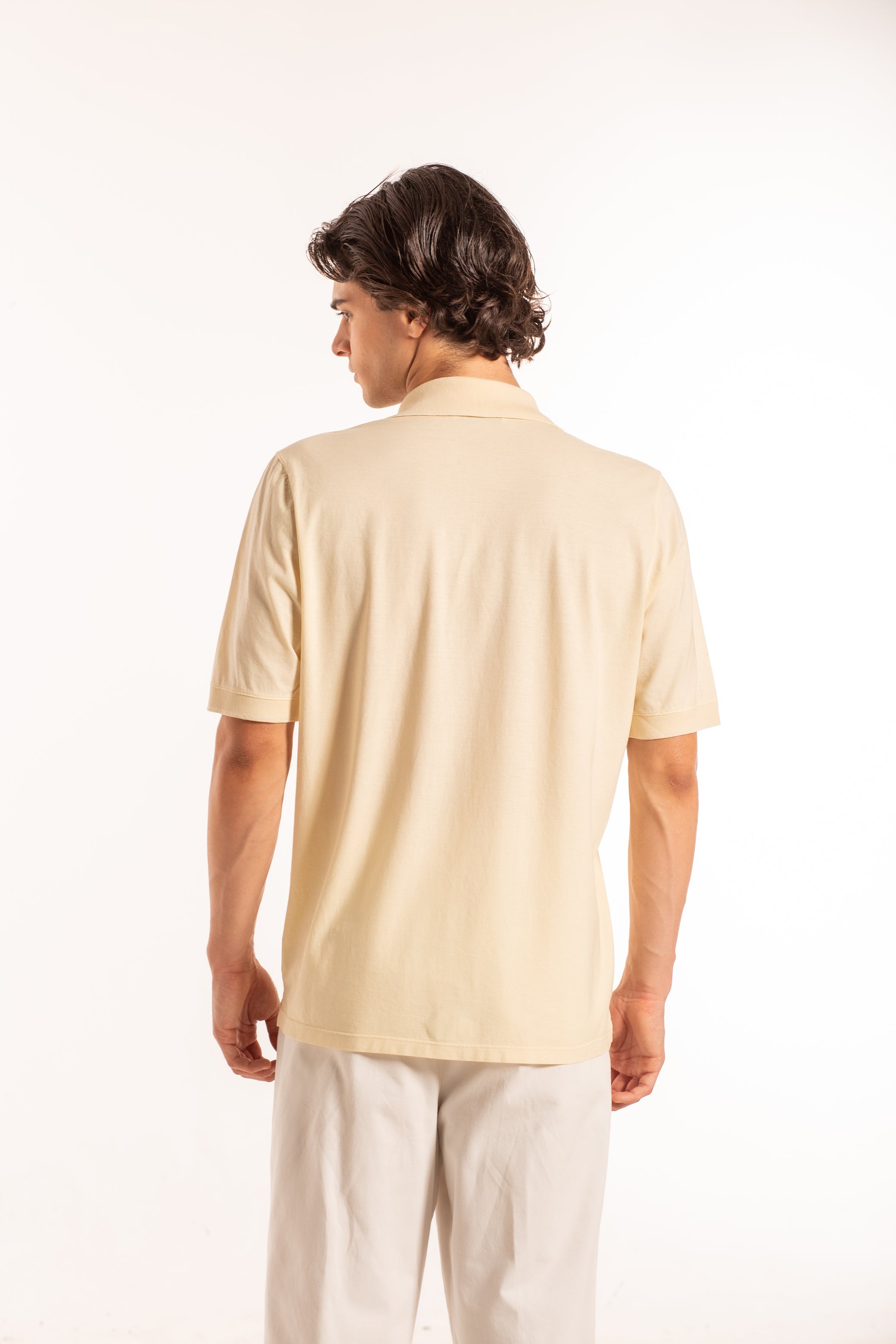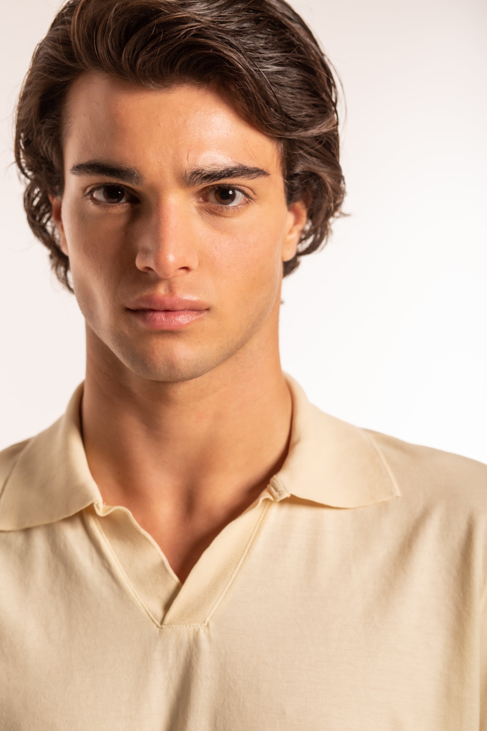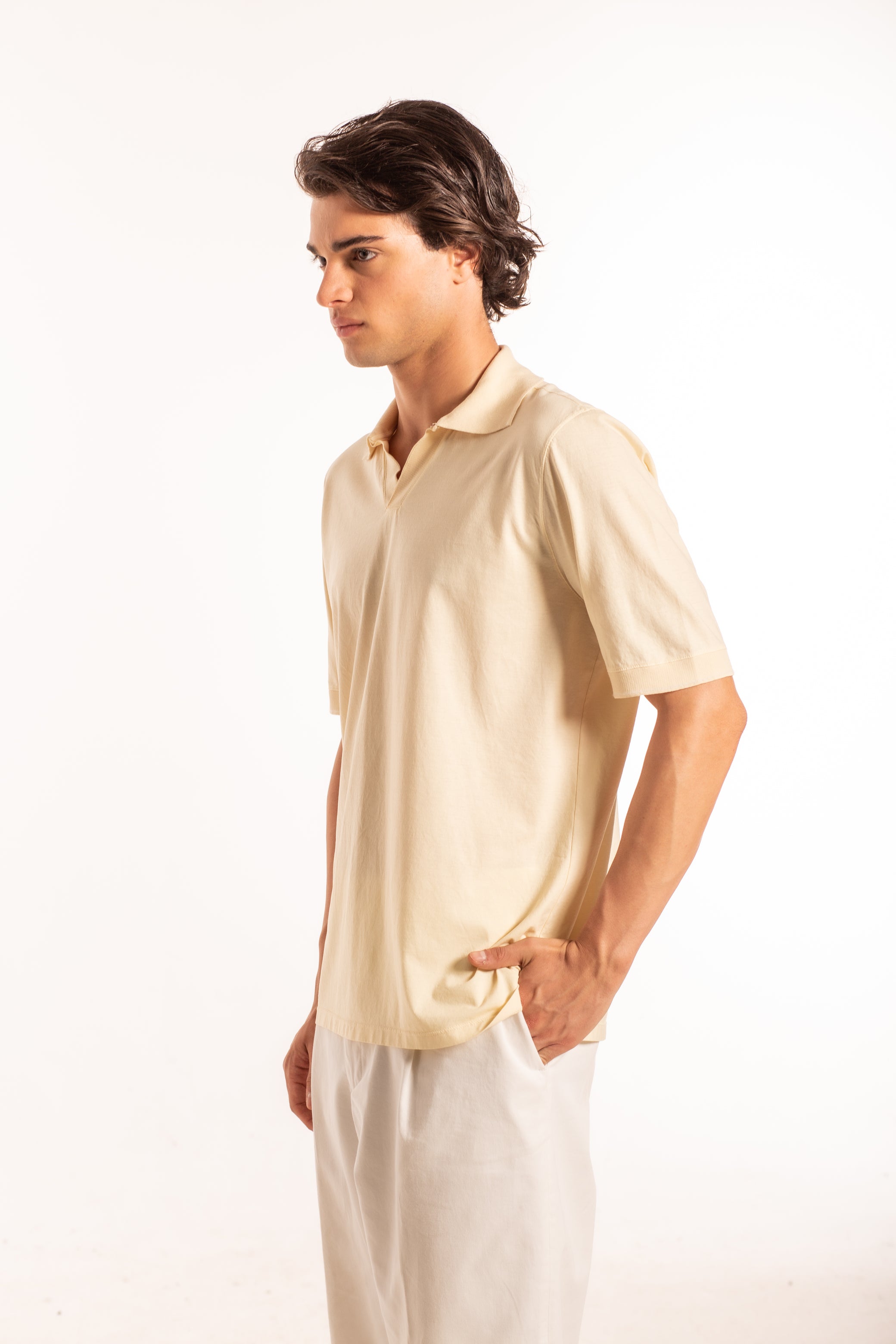 Polo a mezza manica con colletto e scollo a V, dallo stile essenziale e contemporaneo.